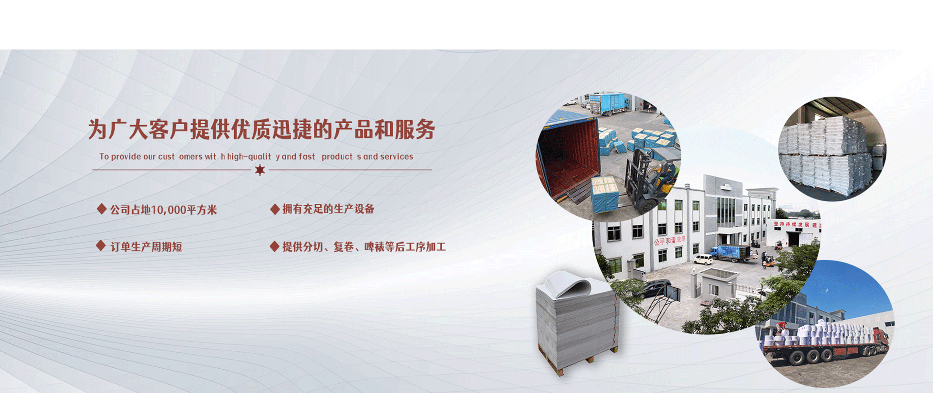 東莞市廣生紙業(yè)有限公司是一家集紙張貿(mào)易、印刷制造于一體的綜合型企業(yè)。位于東莞市道滘鎮(zhèn)蔡白第一工業(yè)區(qū)占地10,000平方米 ,本公司下屬有專(zhuān)業(yè)的印刷廠(chǎng)— 和美印刷廠(chǎng),并擁有高技術(shù)印刷作業(yè)人員和多套先進(jìn)的印刷設(shè)備,印制多種顏色和圖案的普通印刷及環(huán)保印刷產(chǎn)品。